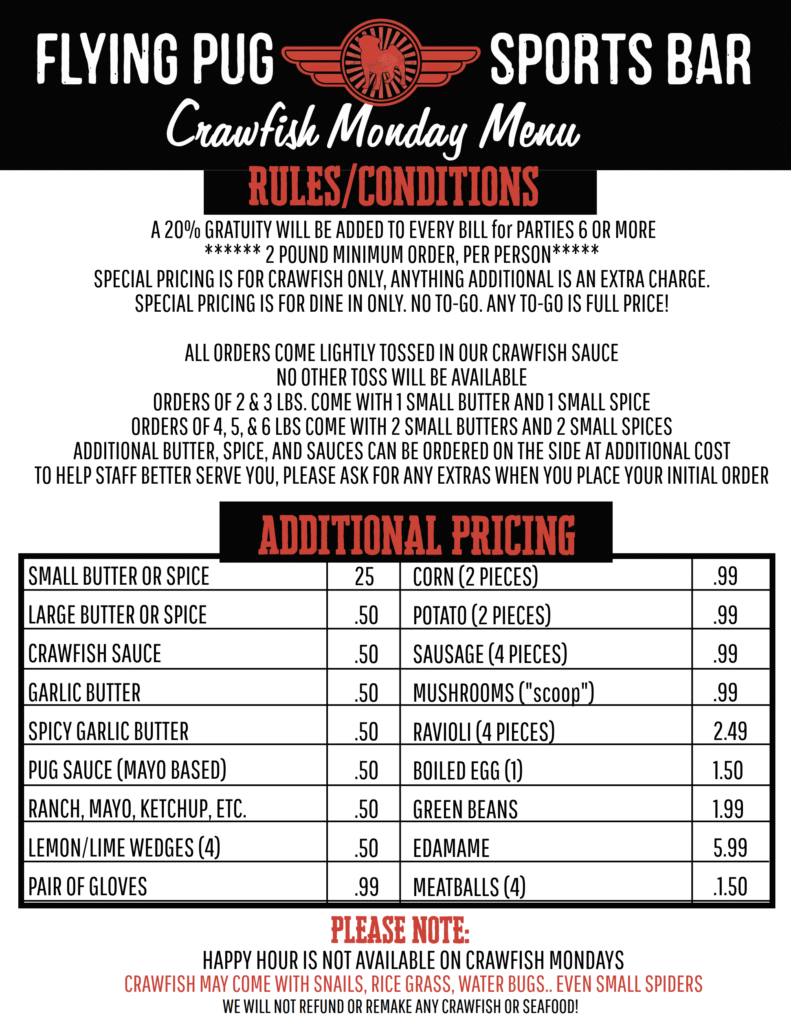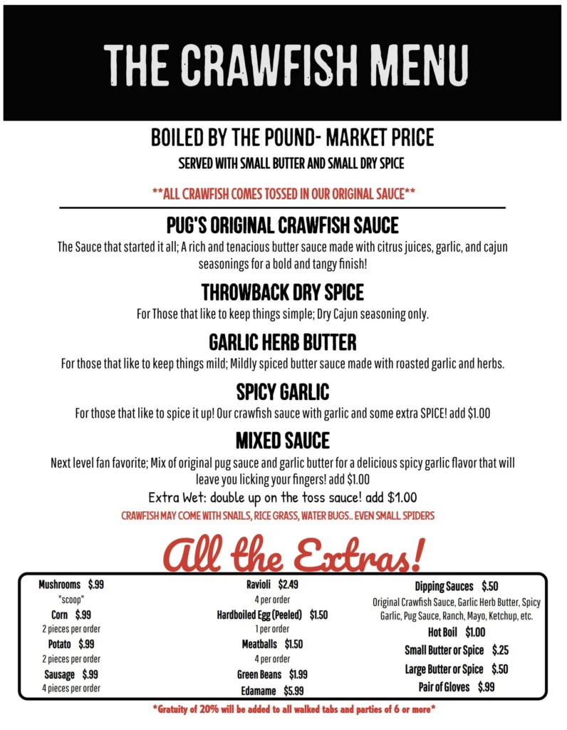 The Crawfish Monay Menu